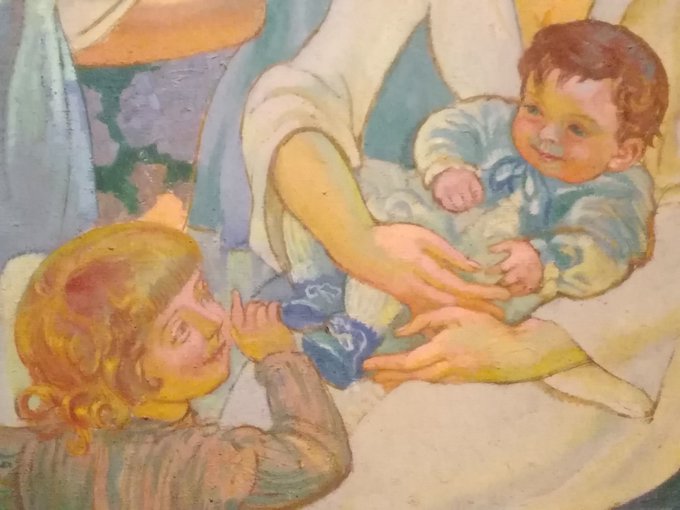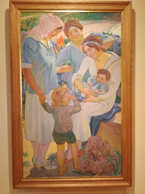 ドニ《若い母》(1919)。赤ん坊を見つめる母たちの表情。子どもたちの表情も。ドニは心底からの幸福の画家。