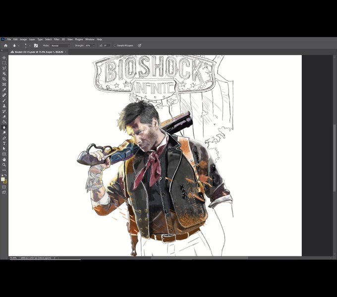 WIP 🚧 Did a bit more to Booker today #smallartist #bookerdewitt #BioShock #troybaker @SilverRelater @TroyBakerVA #DigitalArtist