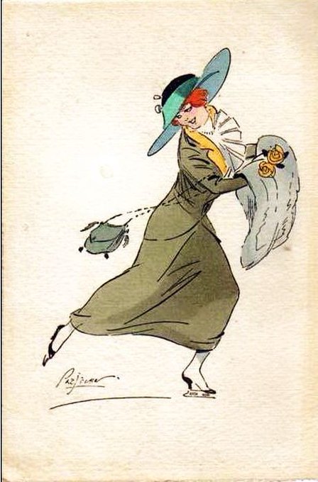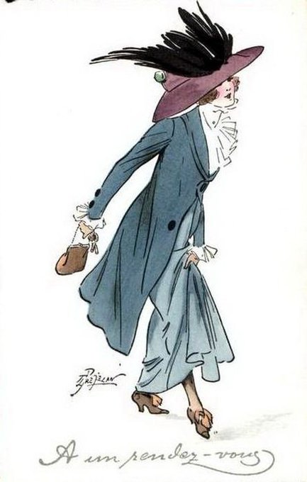 René préjelan ルネプレジュラン(1877-1968)フランスの漫画家、イラストレーター。フランスの大衆紙La Vie parisienneなどの挿絵を担当。そろそろ秋の装いかしら…