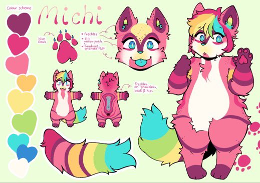 New Oc ref made by @NessieMooo !! This is Michi! They/them pronouns and I absolutely love themmmmmm!! #furryfandom #furryart #Commission