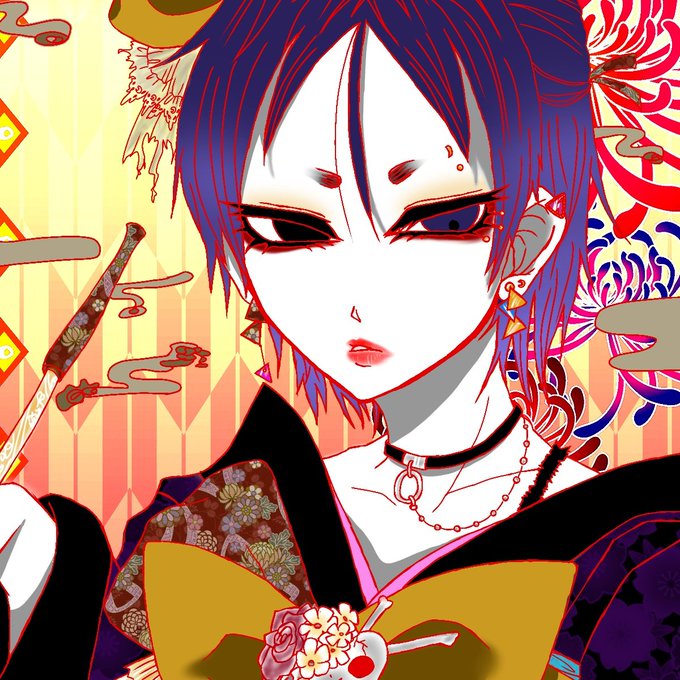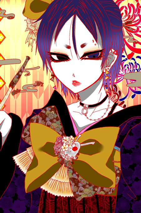 #コラボ絵 #イラスト 素敵絵師桐さんと初コラボ絵を描きました!とても楽しかったです~!(*´ω`*) 特徴 和+ファンキー系 ツリ目美人 三角ピアス、チョーカー 首から肩までの短髪 でした~!! 桐さんありがとうございました!(´▽`)♥♥素敵死ました♥♥← ←桐さん わし→