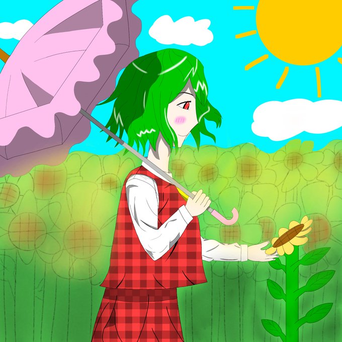 #東方 #東方Project #東方好きと繋がりたい #東方イラスト #風見幽香 風見幽香を描きました! 向日葵畑は沢山はえているように見せるため少し雑に描きました。 何かコメントあるなら是非お願いします。