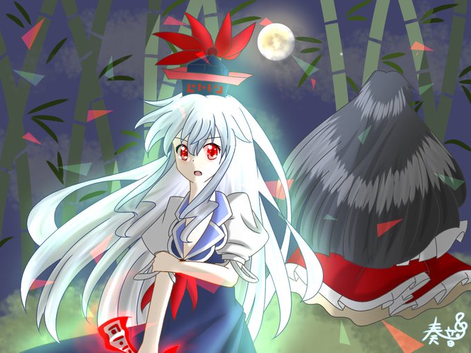 暗くして赤くなった眼とお札とオーラを目立たせました。変身衝動に限界まで抗った、そんな感じの自分の世界観です…輝夜は正直若干手抜きですw それではおやすみなさい〜💤