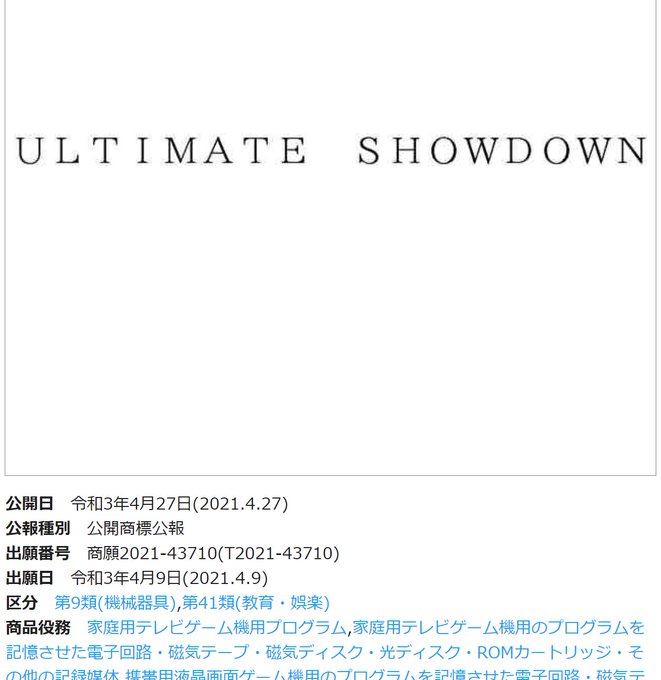 日本のセガが「ULTIMATE SHOWDOWN」を商標出願。