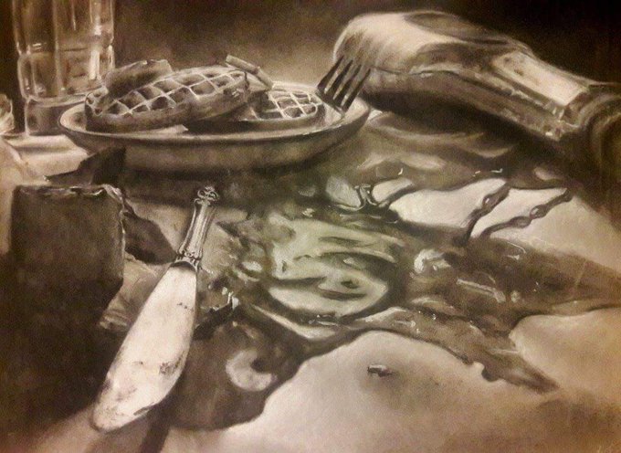 Entry in our August #Renoartio #Art #Contest by Landi Gaither - #charcoal #draw #drawing #breakfast