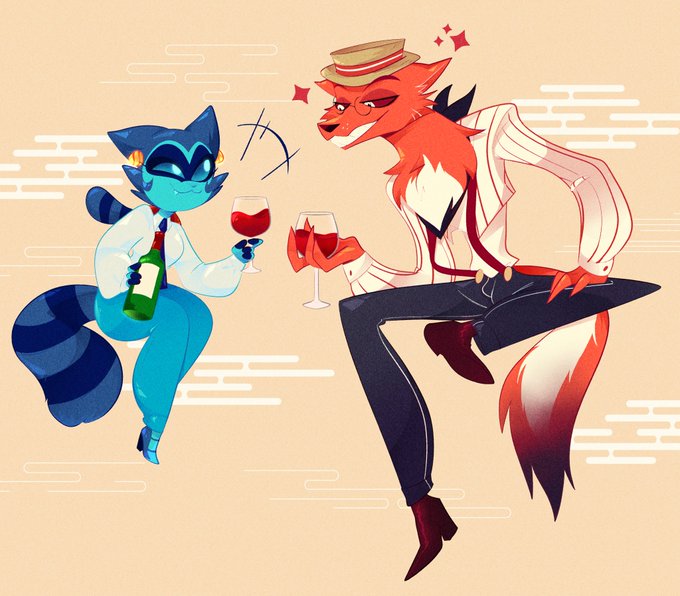 Got @Riux_xxx to do a cute piece of my two OCs having a glass of wine together! 💙❤️