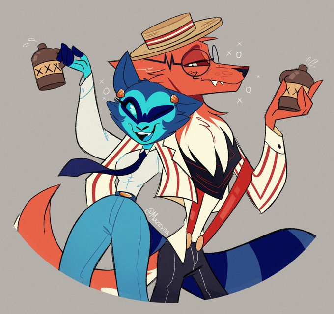 Adorable piece of my OCs partying it up done by @mazzyna21 ❤️💙