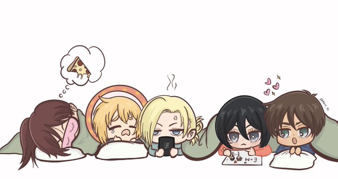 Group Sleepover went like 😅💤#eremika #aruani #sashabraus #MikasaAckerman #ErenJaeger