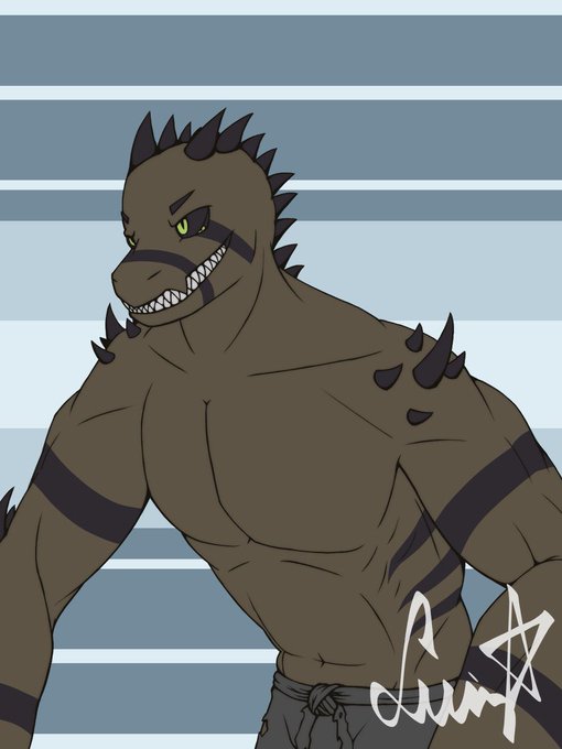 @DSiiiiiix Here’s komo he’s a big ass mutant Komodo dragon and seams to be one of my fan favourite characters for some reason last two drawings made by @/Para_Xio and @/TheLuizStar