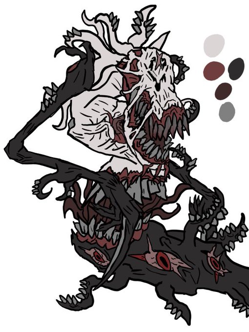 Ted is one of my favourites of the demon lords I’ve made so I decided to draw his little minions the dreadlings. these little basterds are horrific demons made in teds images (second pic is there true forms) #artistsontwitter #oc #ocart