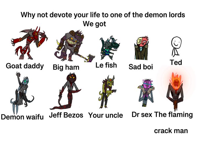 I did make Ted art a while back and now I must make art of all the other demon lords