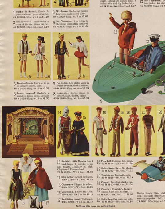 当時もののパンフレットやカタログ画像を見ると本来は同時期に販売されていたバービー人形本体がヴィンテージ期のものなので、ヴィンテージ期バービーに着せたほうがより正確だとは解ってるんだけどあっちは顔がいかつくてとっつきにくいからついモッズ期バービーに着せちゃった