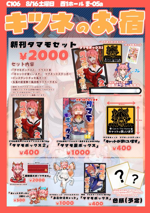いよいよ明日になりました! 8/16(土曜) 西1ホール ま-05a にて頒布いたします、よろしくお願いいたします🦊 お品書き少し見やすくなるように調整しました。 #C106お品書き