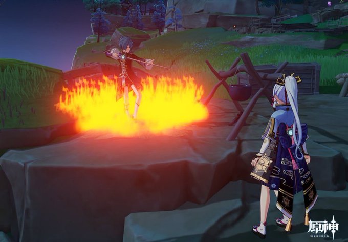 本日のげんしんくんは雪山探検編! ギミック解除されたムービーにタルタルが映り込んでるのとぶった斬られるパイモンがおもしろポイント!