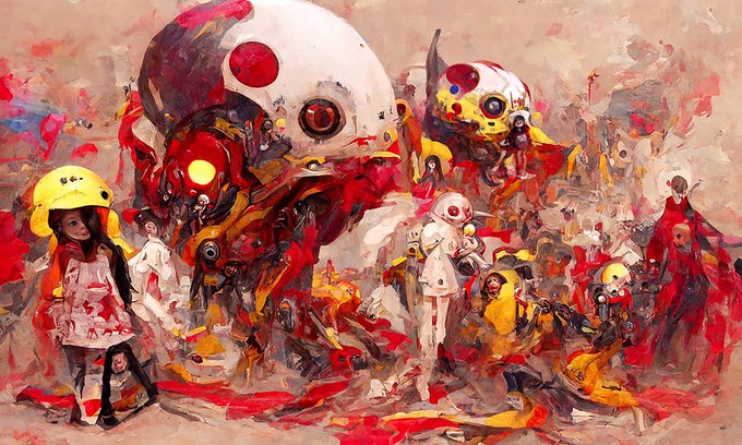 Two pictures of RED, AI Art with some overpaint.