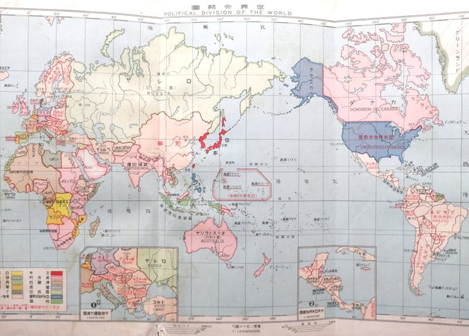 大正14年の世界地図帳から。