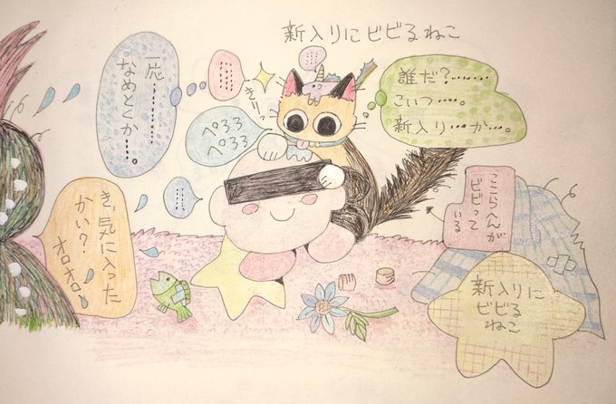 #今日のにゃんこ 🐾🐾 #らくがき #落書き #猫 #ネコ #イラスト #一日一絵 #一日一描 #1日1絵 #星のカービィ #ビビり 「昨日UFOキャッチャーで ゲットしました。」(^_^;) https://t.co/ipgqTynw4B