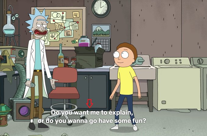 - 408에서는 릭이 딱 한 번 한 걸로 아는데 모티한테 위로 받고 한 잔 걸치기라도 했나 생각중