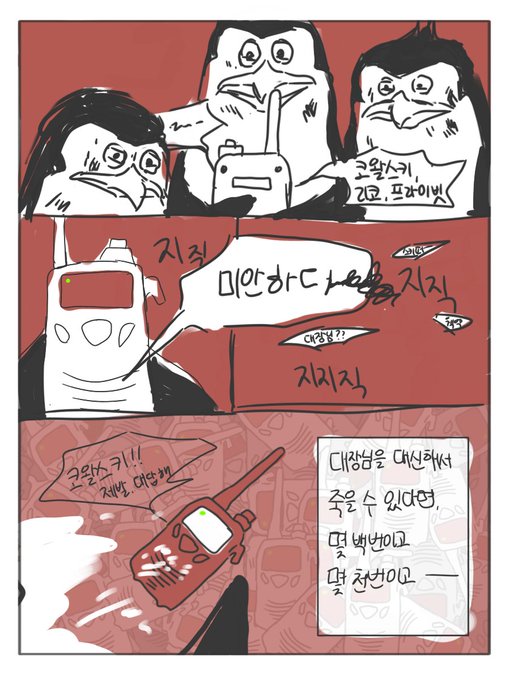 #POM_전력_60분 주제: 무전기 전력 60분은 아니었지만... 임무 중 모종의 이유로 스키퍼를 잃자 몇 백번 몇 천번의 타임슬립을 시도한 코왈스키..누군가가 대신 희생해야 스키퍼가 죽지 않는다는 설정..인데 이게 뭔가 싶음