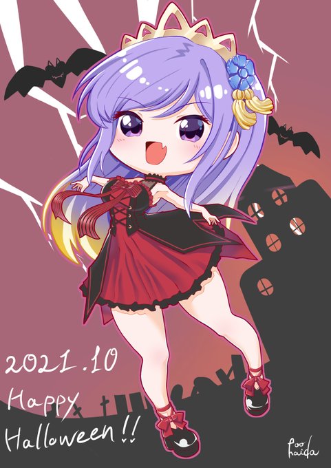 うp大分遅くなっちゃったけど、エキュート瑠璃ちゃん完成しましたー! 瑠璃姉さんほんとにおめでとう!収録等々これからがんばってください! #朝ノ瑠璃 #邪神ちゃんドロップキックx #あさの絵巻 #ハロウィンイラスト #デフォルメ