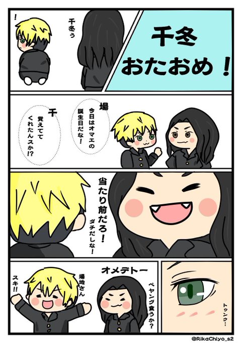 ゆる〜〜い場地と千冬! (文才ないし、絵も雑だが初めて漫画みたいなの描いた!) 描いてるうちに日にち過ぎちゃった💦 #松野千冬生誕祭2021 #松野千冬誕生祭2021 #東卍FA