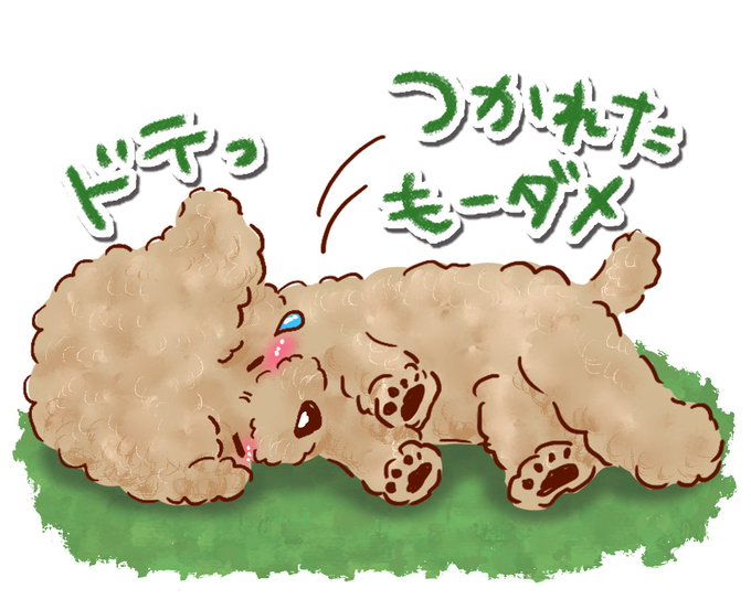 トイプードルラインスタンプ候補「つかれたもーダメ、ドテっ」です😂💦ポーズはアレンジさせていただきました😊💖