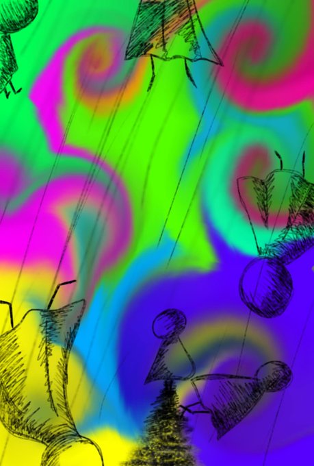 #夢 #カラフル #棒人間 #てるてる坊主 #オリジナルイラスト #デジタルイラスト #デジタル絵 #渦巻 #オリキャライラスト