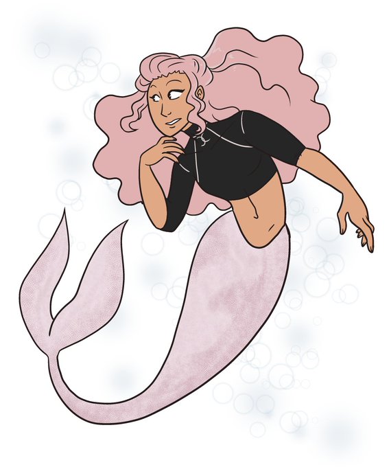 My half of an art trade with macbeth over on Mastodon, their OC Natalia who is pink and a mermaid and really that was all I needed to hear. #mermaid