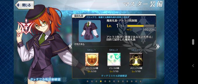 アトラス院制服以外のマスター礼装全12種全部レベル10になりましたー(*'ω' *)