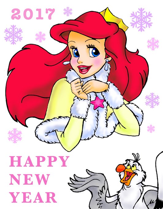 今年の年賀状のイラスト♡ 酉年なので、スカットルとアリエルを描きました♪♪ #イラスト完成 #絵描き人