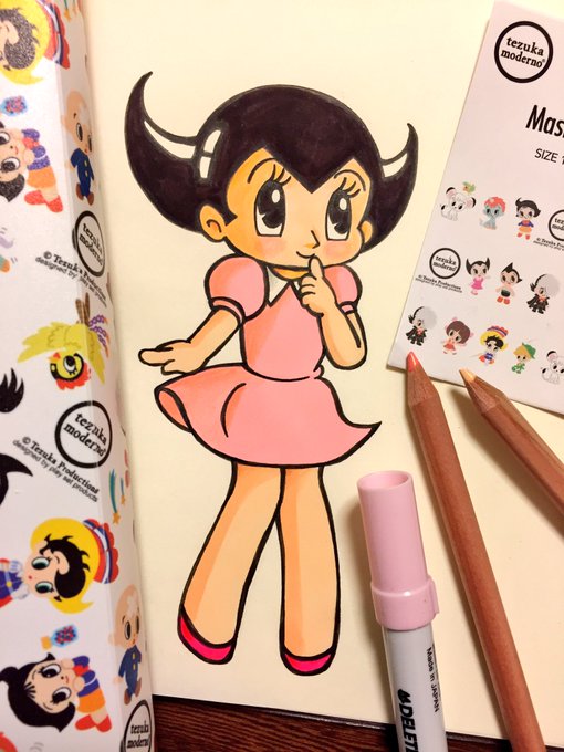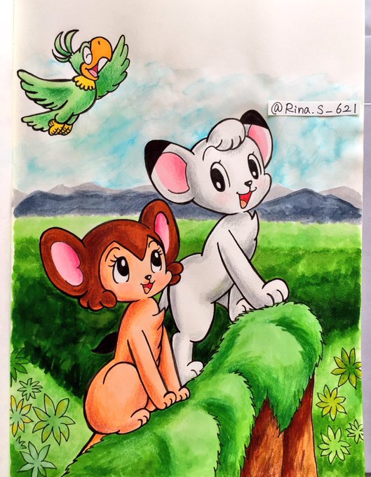手塚治虫先生のキャラクターを描いてみました✩︎⡱ジャングル大帝&アトム&ウランちゃんです♥︎︎∗︎*゚ キャンドゥとのコラボグッズが凄く可愛くて、マステとフォトアルバムをGETしました(*´꒳`*)♡♡♡ #イラスト完成 #絵描き人
