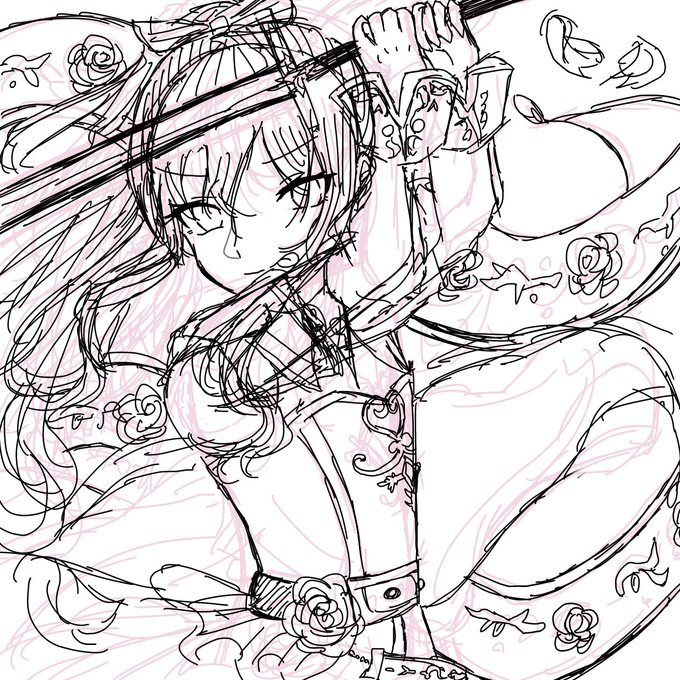 五十音順2人目みずきちゃん進捗! 大ラフとラフと色ラフー!! めっちゃ細かくやっていきたいから あげるのは明日かなー!!