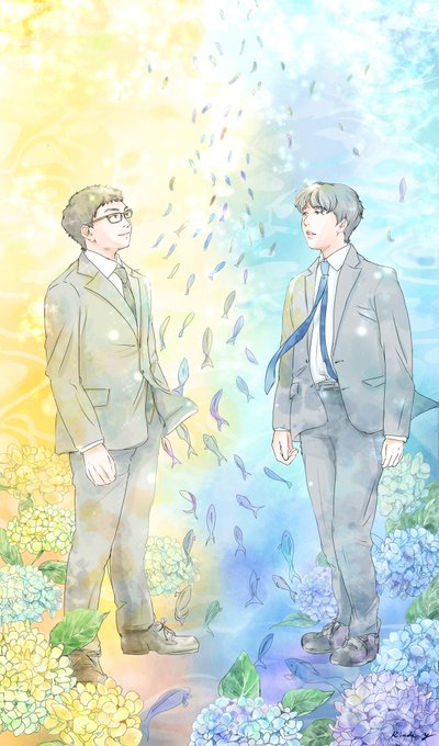 @433_ymsn よみさん、お誕生日おめでとうございます🎂草取りお疲れ様でしたが、今日は1日ゆっくり出来るのでしょうか?あまり上手く描けませんでしたが、斎藤先生と長谷部先生のイラストを贈ります。良い1年になります様に✨
