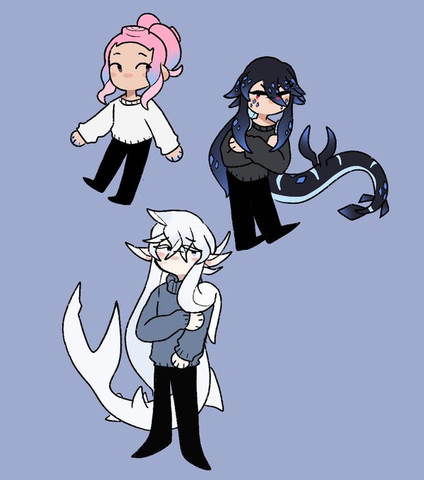 Hhh took too long. (probsbly because of the thin lineart but I wanted to experiment) This was the guy I mentioned wanting to draw. They’re an inkling and Sharkling hybrid with albinism. Might stick with the design 🤔