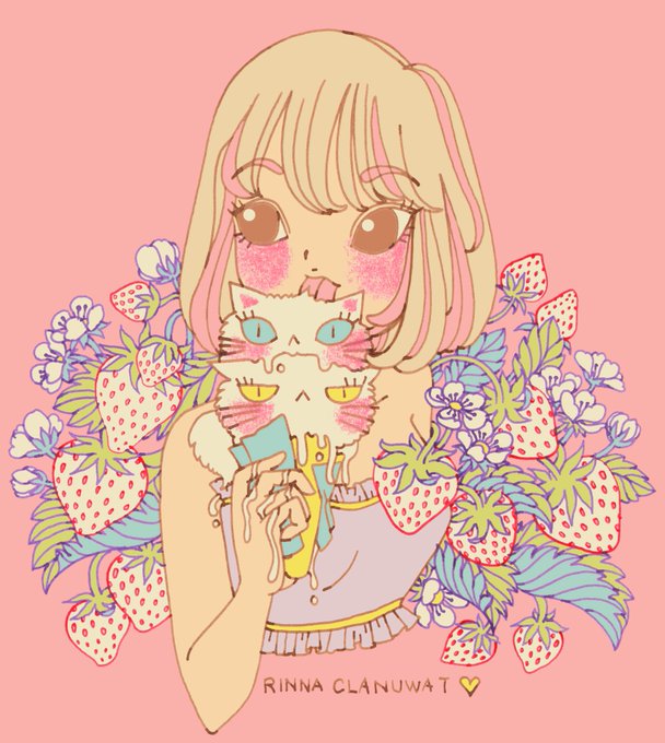 Summer Strawberry Soft Cream 🍓🍦夏のイチゴソフト #絵描き人 #イラスト完成 #イラスト王国 #イラストの森 #猫 #cat #illustration #illustrationoftheday