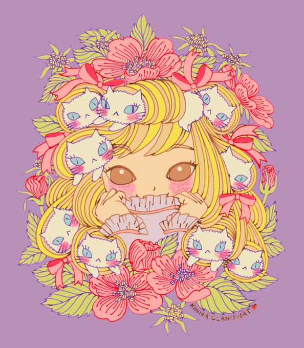 Rapunzel & The 9 Cats 🎀 ラプンツェルと9匹猫たち #絵描き人 #イラスト完成 #イラスト王国 #イラストの森 #猫 #cat #illustration #illustrationoftheday