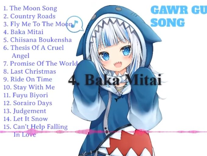 - last song: Gawr Gura - Baka Mitai