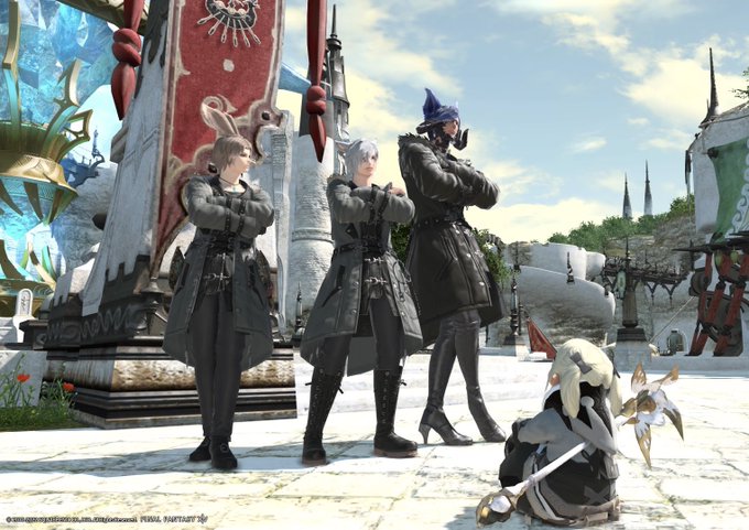 配信前にリムサ広場で同じ衣装を着ていた方達に遭遇👀! 初めてチャットでコミュニケーションとってみたんですが、めちゃくちゃ良い人達でルレ連れて行ってもらいました☺️ オンラインゲームやってるなぁ、、って実感出来た瞬間でした✨ こんな繋がりがもっと増えたらなぁ🤤 #FF14 #旅の思い出