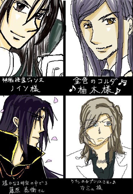 昨日友達と絵チャで「歴代の推しを描こう!」ってなって、ノイン様、柚木様、泰衡さん、カミュ様描いた☺️ カミュ様描く時に利き手と逆で描いてってなったからエラいことになった🤣