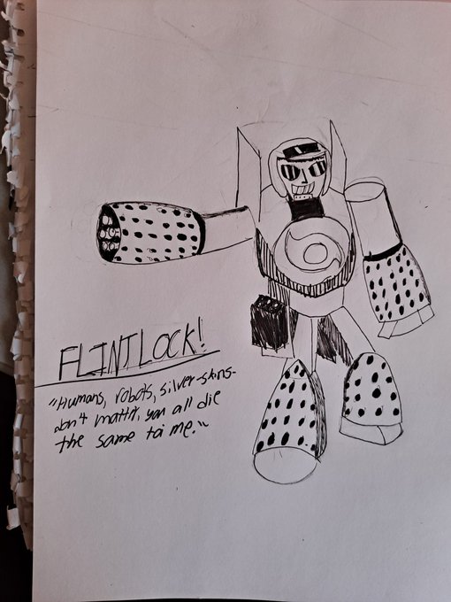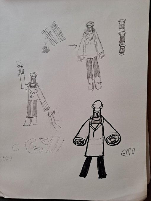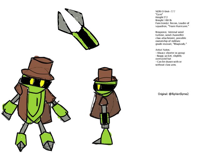 @BlakeOnPluto Meet Gyro! He is one of the first of a type of robot called a NERVO unit, who are basically mass produced robots that can be used as servants. He's not like the others, though, and vows to leave the world better than it was before with his Wind Arm!