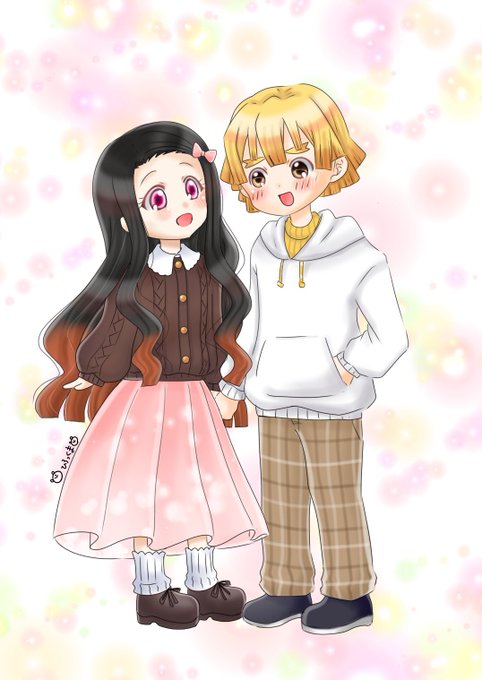 あけましておめでとうございます!私服風ぜんねずを描きました。 今日は仕事始め!頑張ります。 #鬼滅の刃 #我妻善逸 #竈門禰󠄀豆子 #ぜんねず