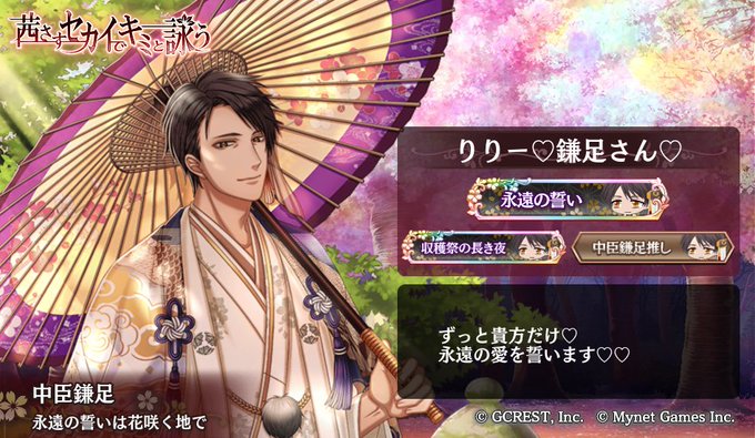 月のきらめきガチャでお迎えした鎌足さん❤ 花宴7人🎲甘き隠しごと7人🍫 ご縁があって嬉しい💕 ランイベに復刻イベ…鎌足さんいっぱいの1ヶ月とても幸せでした🌸 素敵な想い出をありがとうございます✨ #アカセカ