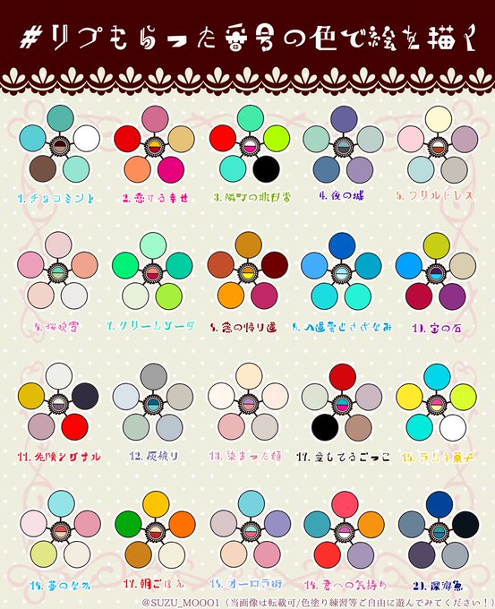 #リプもらった番号の色で絵を描く 「桜吹雪」の心ちゃん、「チョコミント」の子規、「ラムネ菓子」の輝とおまけの「夜の城」の楽です!! リプありがとうございました~~!!
