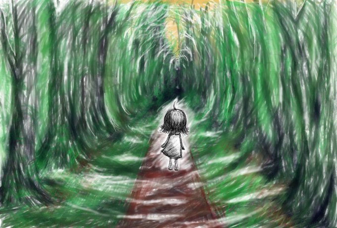 ラフ→線画→色鉛筆→水彩化+ツイッター加工