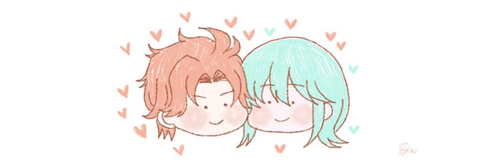 前にヘッダーにしてたとき、これぐらいかなーと思って♡飛ばして描いてたんですけど、いやもうあいらぶゆー聞いたらお互い同じぐらい♡飛んでるかもしれませんね、なんてこった、お熱いこった