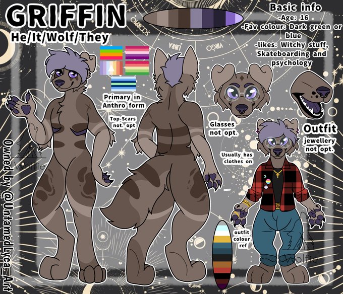 Meet shani! She uses she/It pronouns and is a striped hyena.