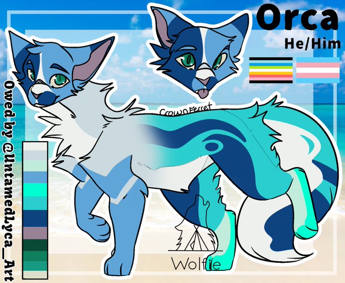 Meet mist! He uses He/Him pronouns and is gay! He is orcas boyfriend and is serious and overprotective. He also can be a big softy when it comes to orca.