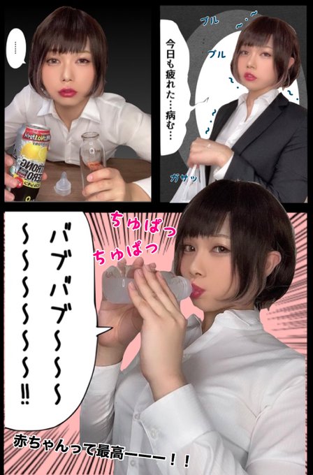 秋乃える(@lkpk_g )先生の『哺乳瓶で酒を飲む限界OLちゃん』にいたく感銘を受けたので、私もバブバブ〜〜〜‼︎しました。