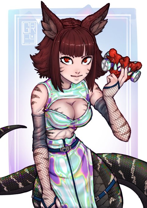 @NastaDoll My pinned post has lore+anatomy I don't have art of her in her winter form with fluffy pearlescent fur on her tail and body's curves. I also don't have art of her where her skin/scales meet or with her *cough* equine dick out *cough*