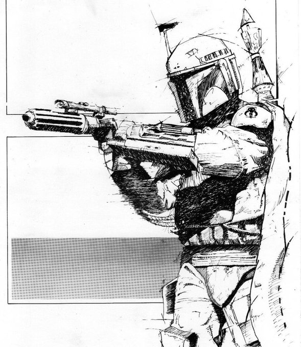 Original illustration of #BobaFett from 1986 and a recent revival of the same #illustrationart #artistsontwitter #art #starwars #illustration